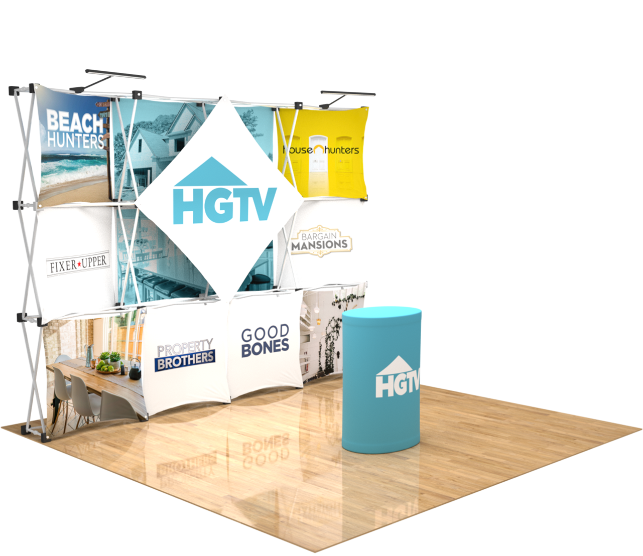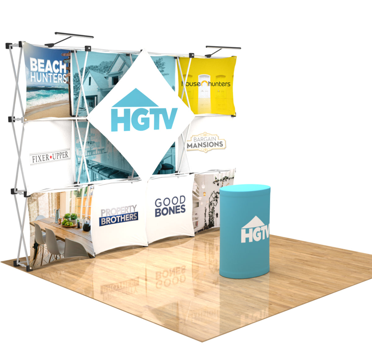 The Deluxe 3D Snap-Up Display allows for a truly unique trade show exhibiting experience! The interchangeable fabric dye sub prints allow an endless forum of design ideas, making this display both eye-catching and eccentric to your consumers. Stand out at your next event and demand the attention your exhibit deserves with the 3D Snap-Up Deluxe trade show display! Featured Package Includes: (1) 4 x 3 Aluminum Frame - 10'W x 7.5'H(4) Skin B(4) Skin D(2) Skin F(1) Skin P(2) LED Lights(1) Hard Case with Podium Graphic* *Case is designed for transport only. We highly recommend saving and reusing the cardboard shipping carton for future shipping purposes