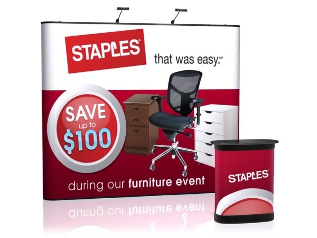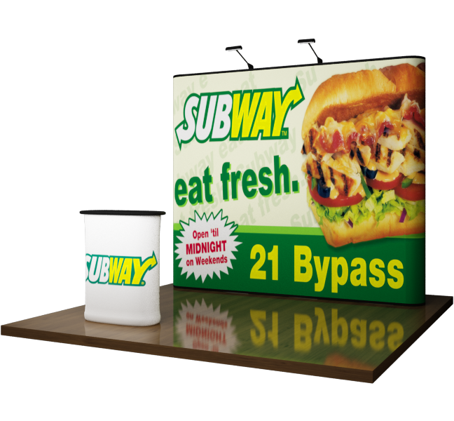 With the Aspen 10' Straight pop up display, you can sport a beautifully customized full color graphic wall at your next event. The graphic panels will provide a seamless effect for your custom artwork, and you can choose to complete the look by adding a graphic wrap for the podium so you may exhibit your products or services. The 10' Aspen is ideal for trade shows, conventions, and conferences. Don't forget to add an Aspen LCD monitor mount to showcase your product images or videos! Package Includes:(3) Photomural Graphic Center Panels(2) Photomural Graphic End Cap Panels(1) Extruded Aluminum Straight Pop-Up Frame(18) Magnetic Channel Bars with Bag(1) Counter Conversion Skirt(2) LED Lights(1) 2 Piece Hard Top Counter(1) Hardshell Transport Case