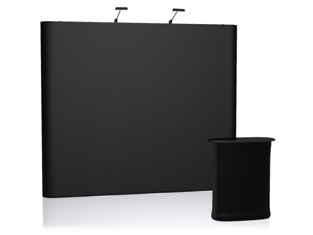 This Straight 10' pop up display is a great way to make a solid impact on anyone you hope to impress. The Aspen 10' straight pop up exhibit comes with your choice of blue, black, or gray velcro ready fabric as a perfect back drop for detachable graphics or an LCD monitor bracket. Its ideal for exhibiting your products and services at conventions, conferences, and other events. Package Includes: (3) Velcro Ready Fabric Center Panels(2) Velcro Ready Fabric End Cap Panels(1) Extruded Aluminum Straight Pop-Up Frame(18) Magnetic Channel Bars with Bag(1) Counter Conversion Skirt(1) 2 Piece Hard Top Counter(2) LED Lights(1) Hardshell Transport Case