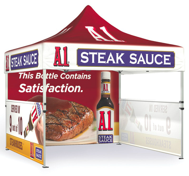 If you're looking to max out on your investment, do it in style with a product that can last you an eternity! Our lifetime warranty stands behind this premium outdoor tent, creating a masterpiece with it's rich colors and full printed graphic. The canopy is made of durable alluminum, allowing it's hand-crank system to quickly pop up and be ready to go in just minutes. Add weights and side printed walls for an added effect. ** Failing to secure the tent will result in void of Warranty Featured Package Includes: (1) Deluxe Frame(1) Custom Graphic Dye-Sublimation Print(1) Tent Soft Case with Wheels(1) Tent Stake Kit