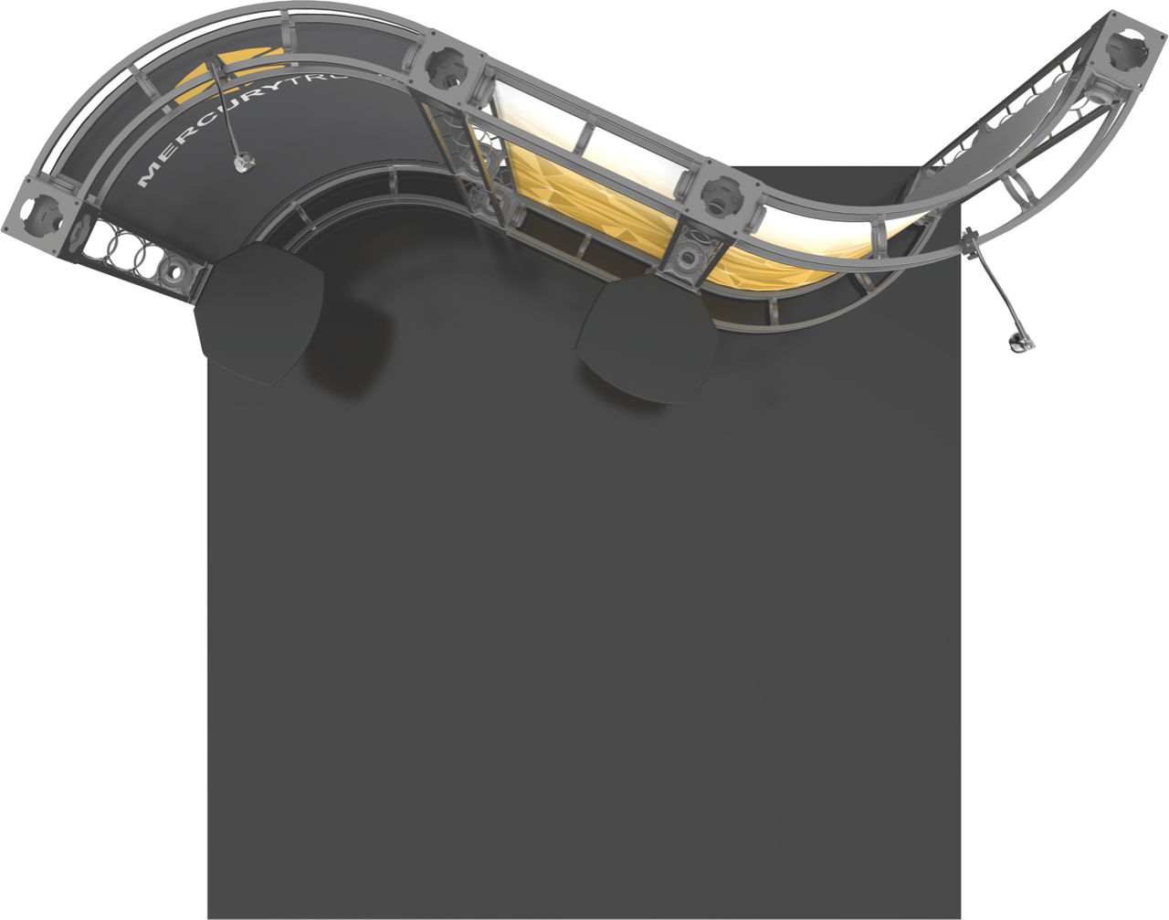 The 10'x10' Mercury trade show display brings a wave shape to your truss display, allowing you to utilize three tall center graphic panels to show-off your message and brand. Complete with two 50W spotlights, the Mercury is a simple and effective tradeshow system when trying to make a statement. The Mercury trade show display is capable of housing an LCD bracket (not included), as well as multiple shelves throughout the system (two shelves included). Featured Package Includes: (6) 36" Truss Lengths(4) 46" Truss Lengths(10) 45˚Curved Truss Lengths(16) 6-Way Junction Boxes(1) Adjustable Table Top(3) 50W Spotlights(1) Heavy Duty Case(1) Quicklock Tool(1) Full Set of Quicklock Connectors Optional Upgrades:(3) LED Lights (1) Additional Monitor Mount(2) Additional Table Tops **FREIGHT GROUND SHIPPING INCLUDED IN PRICE**