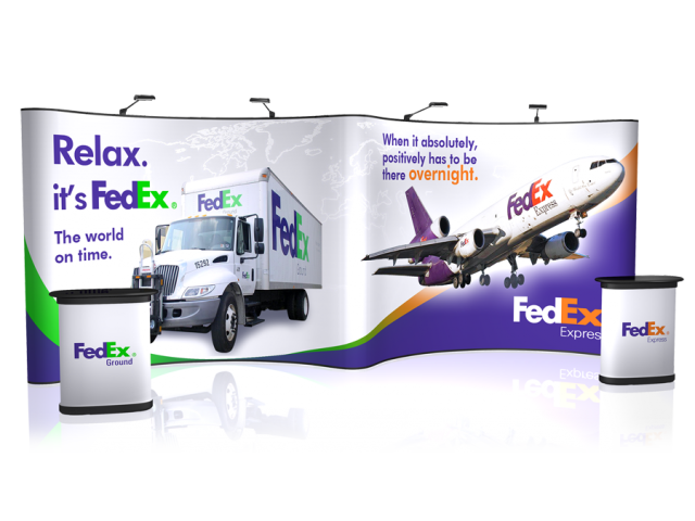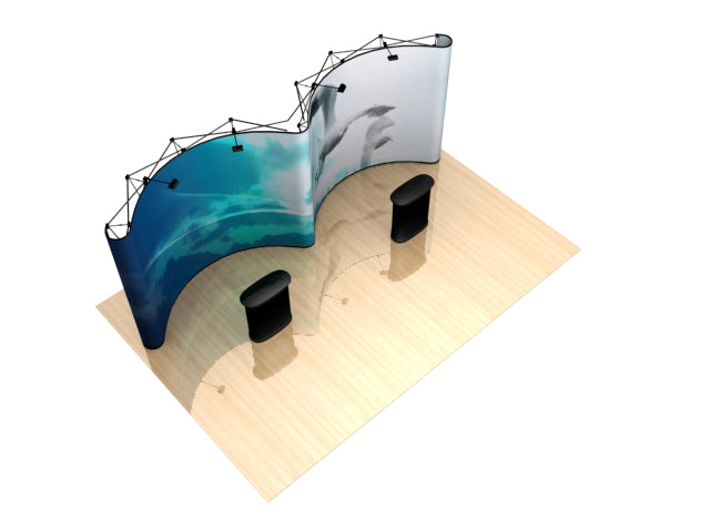Full color graphic panels make this a truly impressive trade show display. The EZ 20' GullWing includes four LED lights and two hardshell cases* that will convert into a podium, complete with a black skirt to complete the look. Add a podium graphic wrap to bring a new dimension to this already unique display. Best of all, the Gull-Wing gives you a chance to showcase two unique sets of graphics, or present it as one large effect based on your companies products and offerings at the next trade show or event. Package Includes: (9) Photomural Graphic Center Panels(2) Photomural Graphic End Caps(2) Premium Extruded Aluminum Curved Pop-Up Frames(42) Magnetic Channel Bars with Bag(2) Counter Conversion Kitts(4) Halogen Lights(2) Hardshell Transport Cases* Optional Upgrades: (1) Custom Podium Graphic(4) LED Lights *Case is designed for transport only. We highly recommend saving and reusing the cardboard shipping carton for future shipping purposes