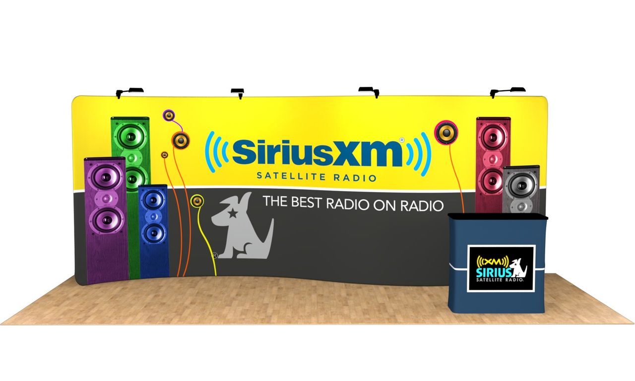 The Tru-Fit 20' Serpentine trade show display is the most effective marketing tool for your 20' booth space! Not only does it have a creative snake-like shape, but the seamless graphic and lightweight frame make it the most convenient 20ft trade show display on the market. Perfect for exhibiting your products and services at conventions, conferences, and other events. This package conveniently packages into a single hardshell case that doubles as a podium. Custom podium graphic print included! Optional add-ons include (2) Additional LED lights, a single or double-sided print, and our in-house design services. Be sure to check out our Tru-Fit Viper banner stands if you're looking to add extra marketing power to your trade show display! Featured Package Includes: (1) High Resolution Zippered Tension Fabric Graphic Print (1) 20' Aluminum Snap-Tube Frame(1) Durable Hard Case* w/ Podium Conversion Kit(1) Podium Graphic Print Optional Upgrades:(2) Additional LED Lights Double-Sided Graphic Let us design for you! Standard Design Services are offered at set rates based on 6 hours for backdrop + podium design (single sided backdrop). Simply send us all of the design elements such as your logos, text, pictures, and anything else you would like included, and our team of experienced designers will create a custom, professional, and effective design for you! Please note: Double-Sided print designs will require additional design services IF the back side design is different from the front side. Additional design time will be assessed on a per project basis. For more information on our design services, CLICK HERE. *Case is designed for transport only. We highly recommend saving and reusing the cardboard shipping carton for future shipping purposes