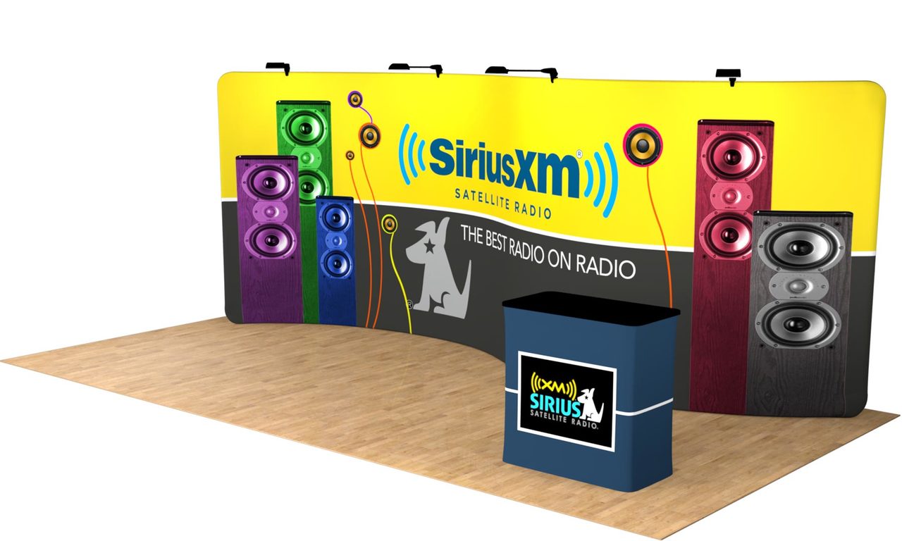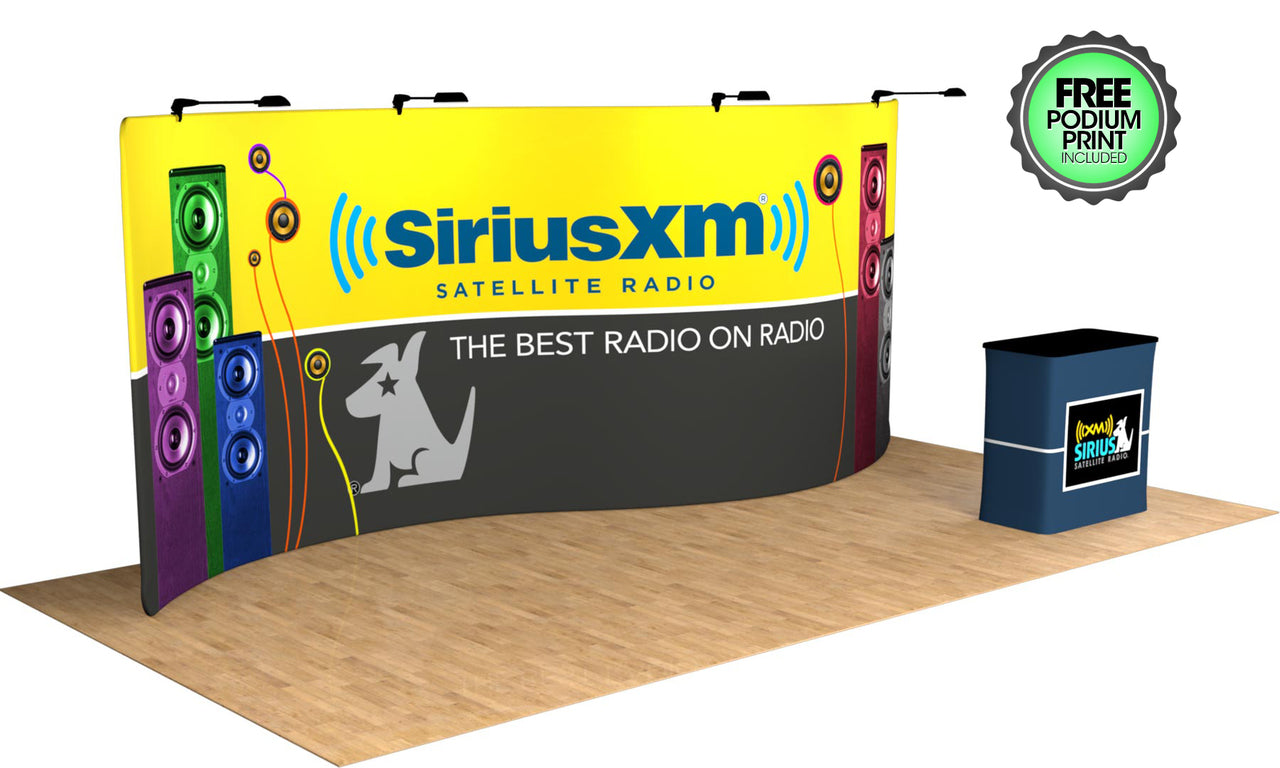 The Tru-Fit 20' Serpentine trade show display is the most effective marketing tool for your 20' booth space! Not only does it have a creative snake-like shape, but the seamless graphic and lightweight frame make it the most convenient 20ft trade show display on the market. Perfect for exhibiting your products and services at conventions, conferences, and other events. This package conveniently packages into a single hardshell case that doubles as a podium. Custom podium graphic print included! Optional add-ons include (2) Additional LED lights, a single or double-sided print, and our in-house design services. Be sure to check out our Tru-Fit Viper banner stands if you're looking to add extra marketing power to your trade show display! Featured Package Includes: (1) High Resolution Zippered Tension Fabric Graphic Print (1) 20' Aluminum Snap-Tube Frame(1) Durable Hard Case* w/ Podium Conversion Kit(1) Podium Graphic Print Optional Upgrades:(2) Additional LED Lights Double-Sided Graphic Let us design for you! Standard Design Services are offered at set rates based on 6 hours for backdrop + podium design (single sided backdrop). Simply send us all of the design elements such as your logos, text, pictures, and anything else you would like included, and our team of experienced designers will create a custom, professional, and effective design for you! Please note: Double-Sided print designs will require additional design services IF the back side design is different from the front side. Additional design time will be assessed on a per project basis. For more information on our design services, CLICK HERE. *Case is designed for transport only. We highly recommend saving and reusing the cardboard shipping carton for future shipping purposes