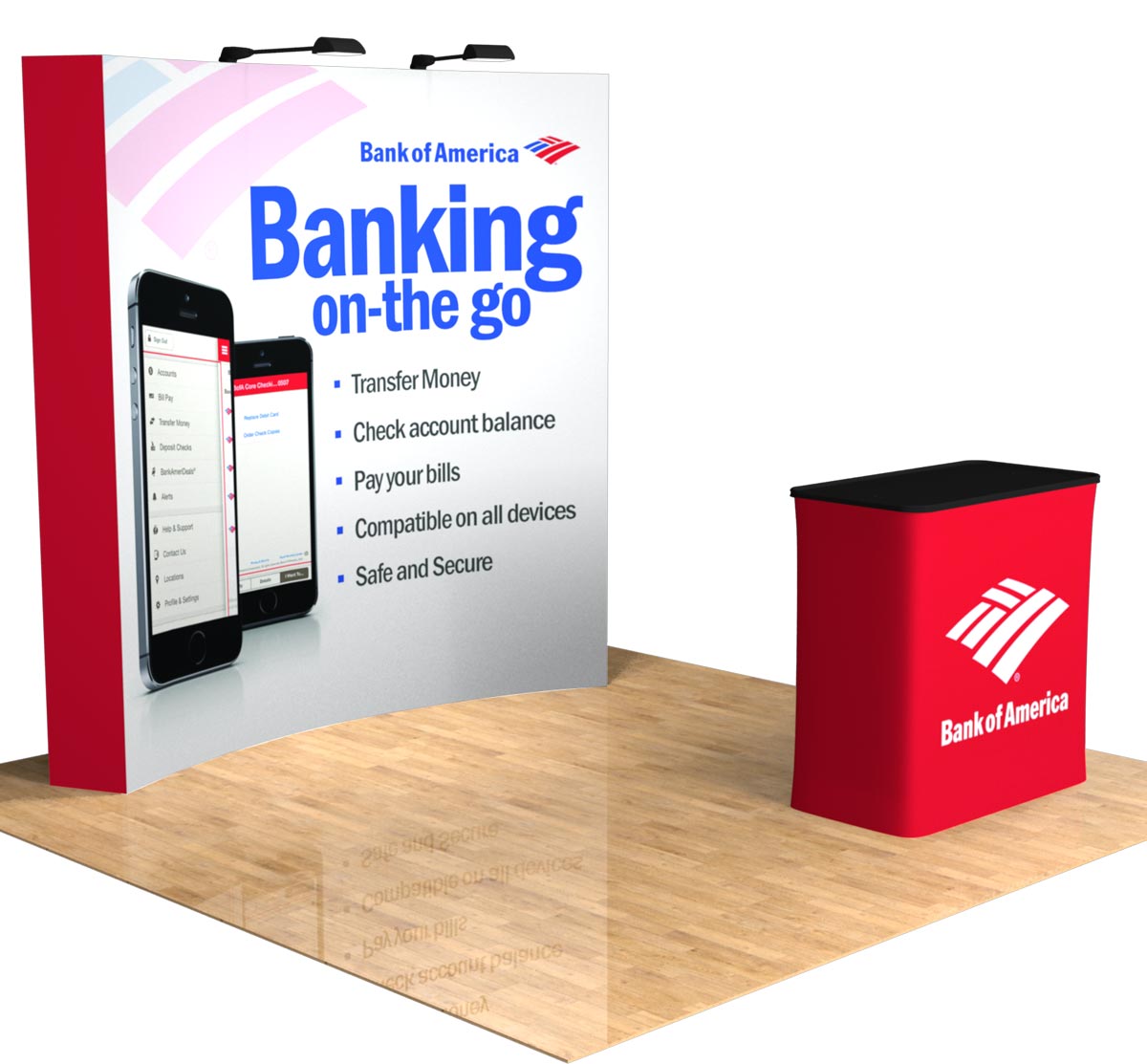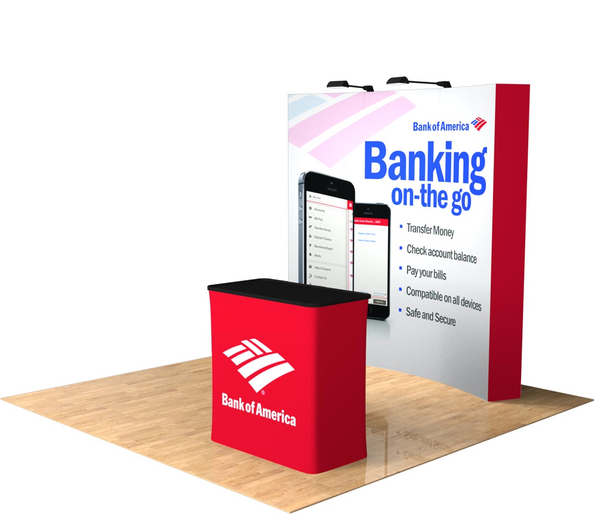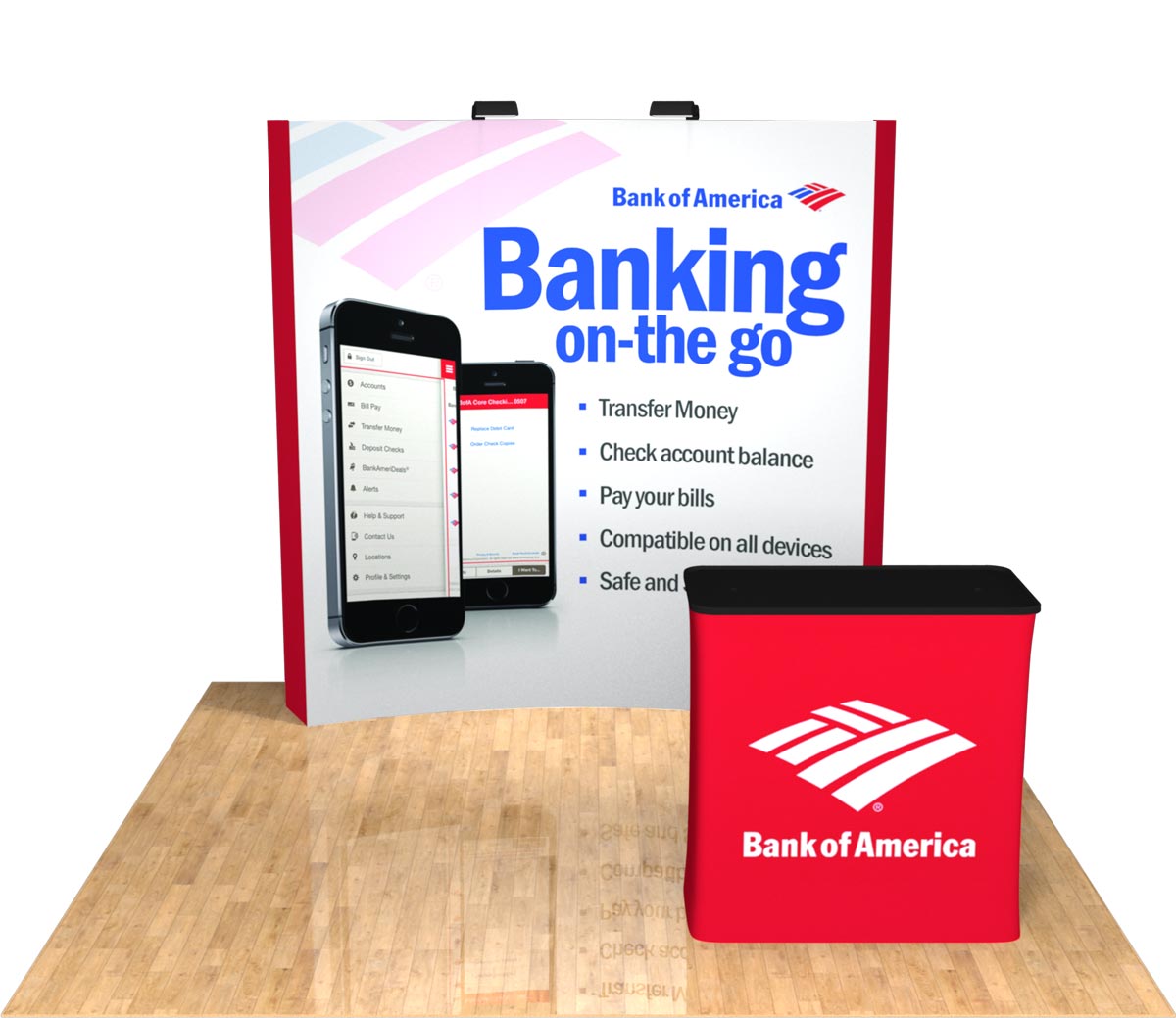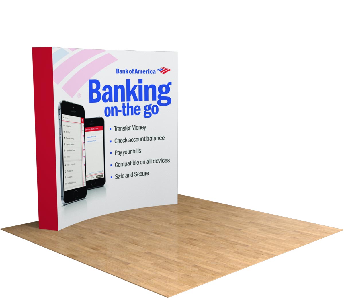 Just when you thought trade show displays couldn't get any more awesome, the Perfect-Pop 8' Curved exhibit booth shows up .The breathtaking tension fabric dye sub print is sure to help your company's message be heard loud and clear at your next trade show or event. The Perfect-Pop pop up sets up in under five minutes, making it the fastest setup and breakdown in the industry! The entire lightweight accordion-style frame easily collapses, with graphics still attached, into a duffel bag or hardshell transport case*. The hard case comes with two LED lights and sports wheels and a handle for easy transport to/from tradeshows. The hard case also converts into a fully functional podium to which you can add a podium graphic for extra brand marketing. Perfect for exhibiting your products and services at conventions, conferences, and other events. Featured Package Includes: (1) High Resolution Seamless Fabric Print (1) 8' Curved Collapsible Aluminum Pop Up Frame(1) Nylon Duffel Bag with Wheels Optional Upgrades:(2) LED Lights (1) Durable Hard Case* with Wheels(1) Podium Graphic for Hard Case Let us design for you! Standard Design Services are offered at set rates based on 3 hours of work for backdrop only, and 4 hours for backdrop + podium design (single sided backdrop). Simply send us all of the design elements such as your logos, text, pictures, and anything else you would like included, and our team of experienced designers will create a custom, professional, and effective design for you! For more information on our design services, CLICK HERE. *Case is designed for transport only. We highly recommend saving and reusing the cardboard shipping carton for future shipping purposes