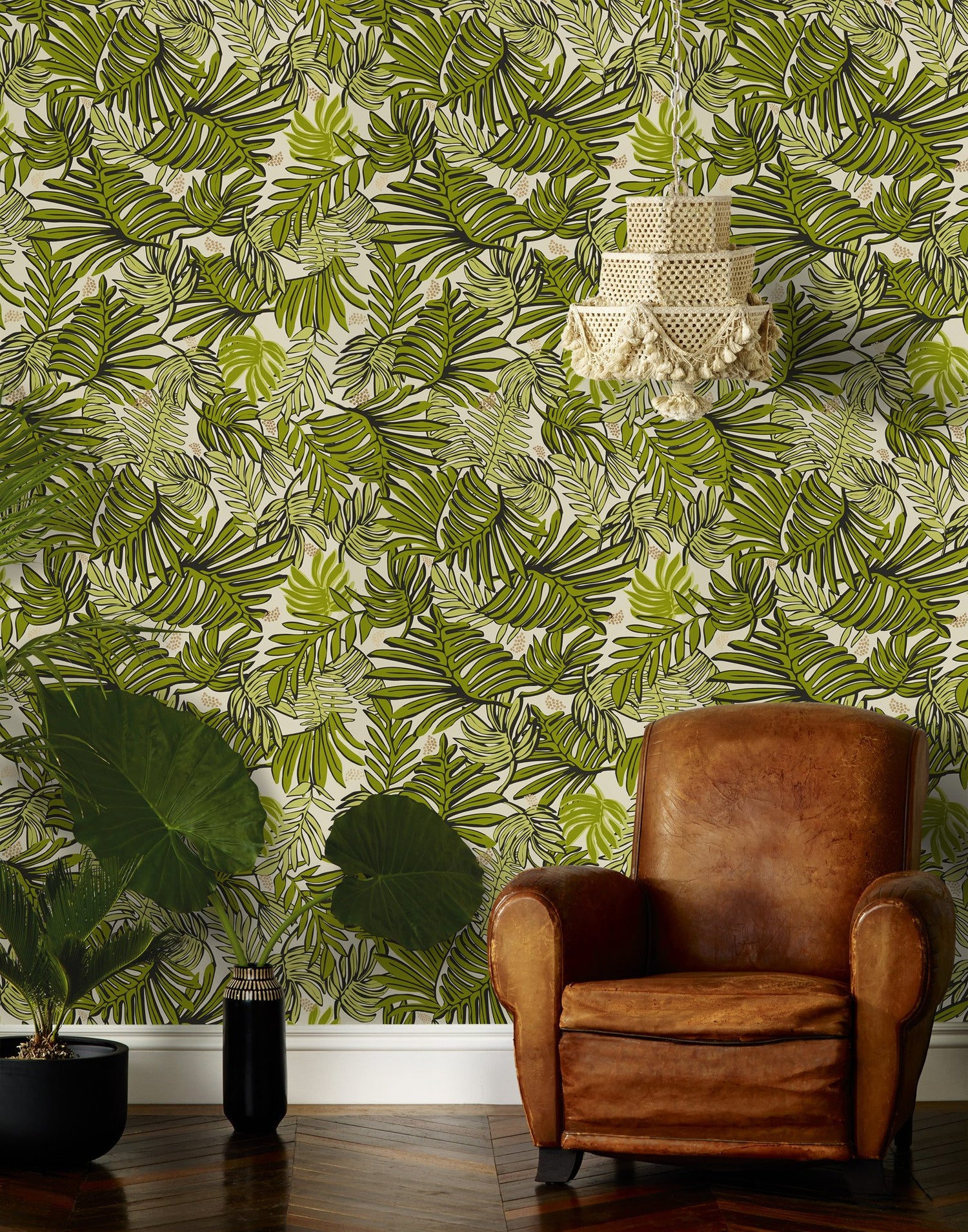 According to Yoruba mythology, Aja is a patron of the forest and the animals. This exuberant motif pays homage to plants - with mammoth leaves that provide shade and berries that provide nutrition. Aja wallpaper is meant to celebrate the giving nature of the glorious flora.