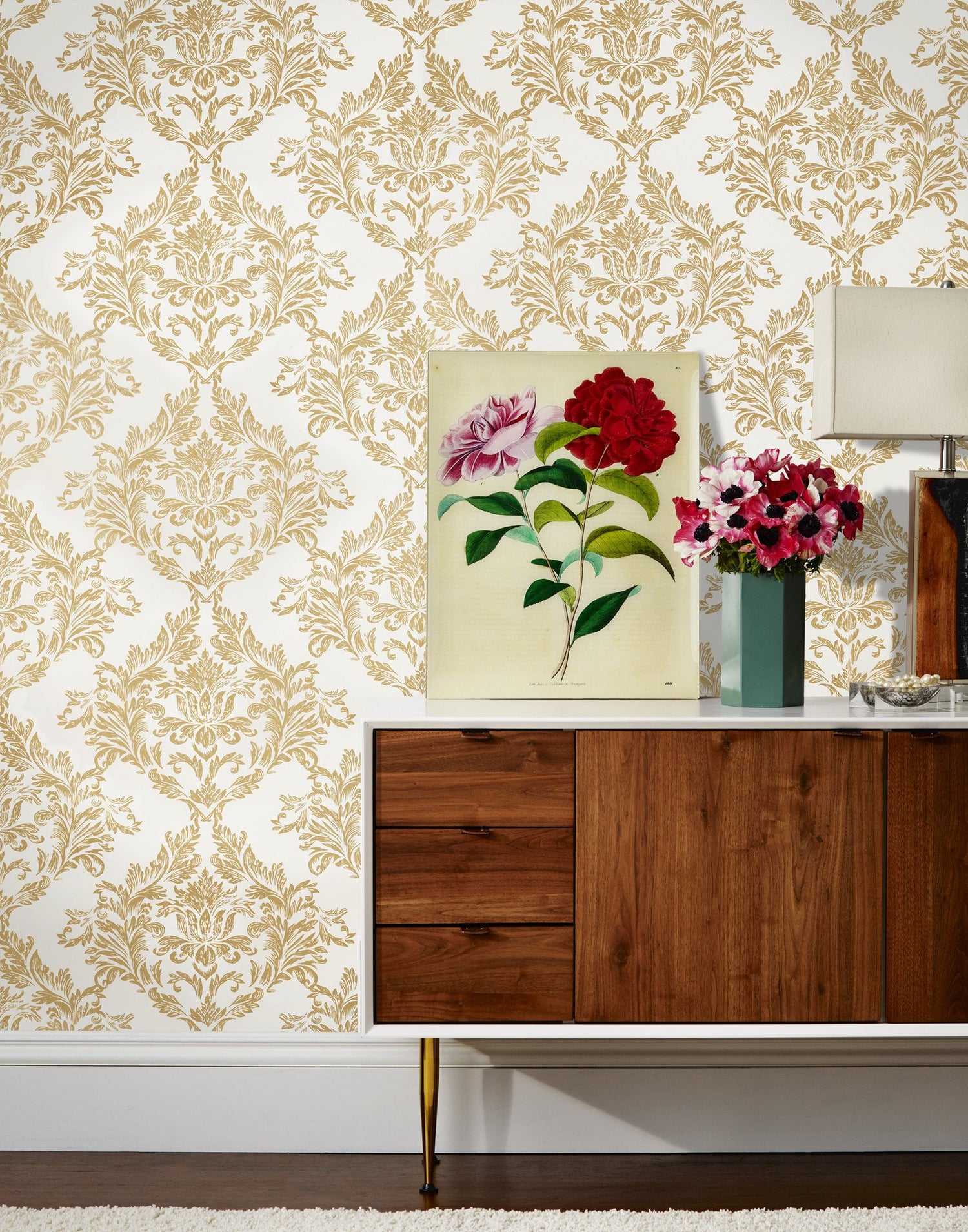 The traditional Damask pattern gets a twist, going large scale in modern colors. The hand-sketched motif adds unique detailing and gives this wallpaper a distinctly handcrafted feel that compliments both modern and traditional décor.