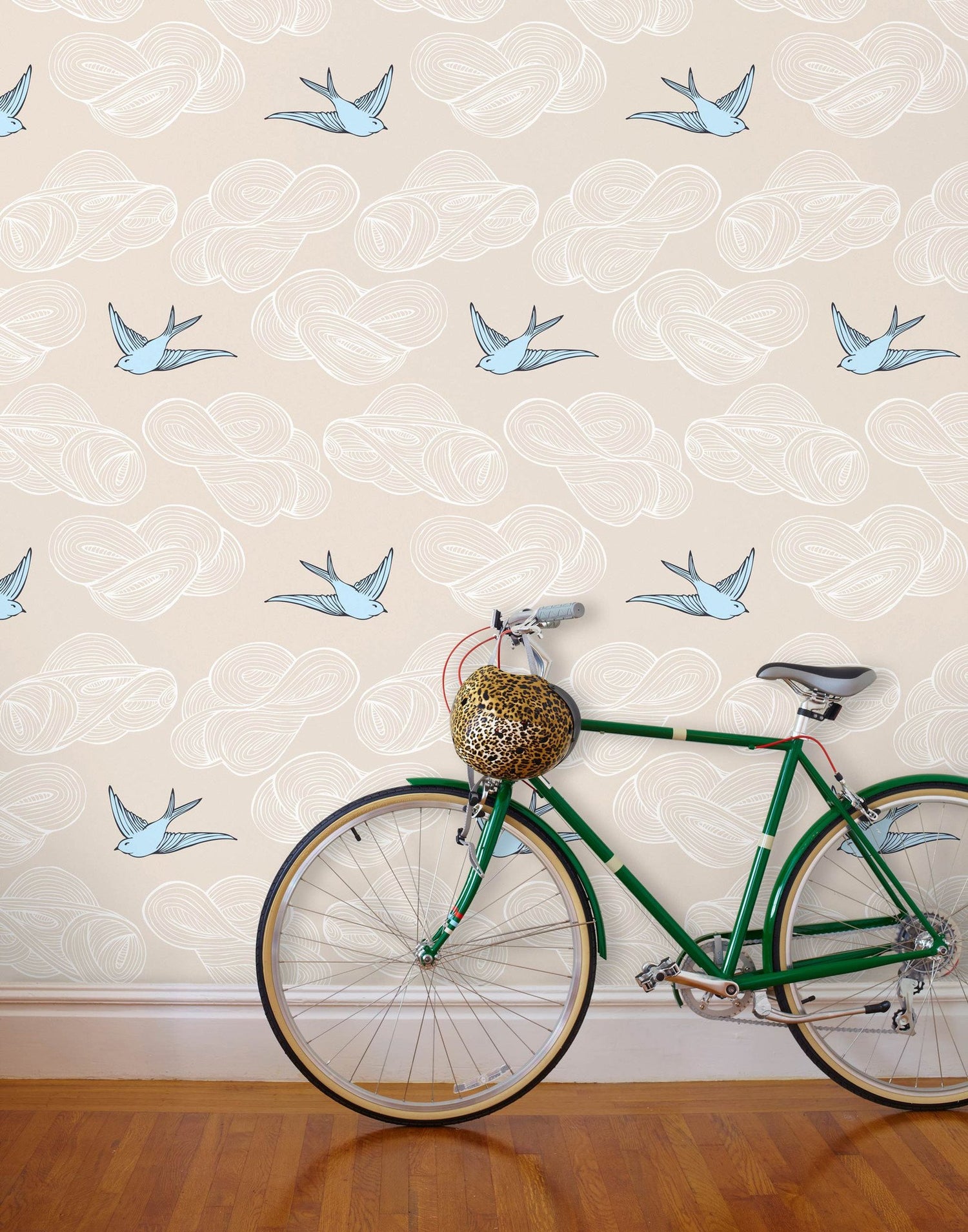 Hand-drawn birds and clouds float in this large scale, modern wallpaper pattern that mixes a classic design with contemporary colors. From blush, gray and blue to metallics and neutrals, Daydream finds its home in a wide variety of interior spaces.