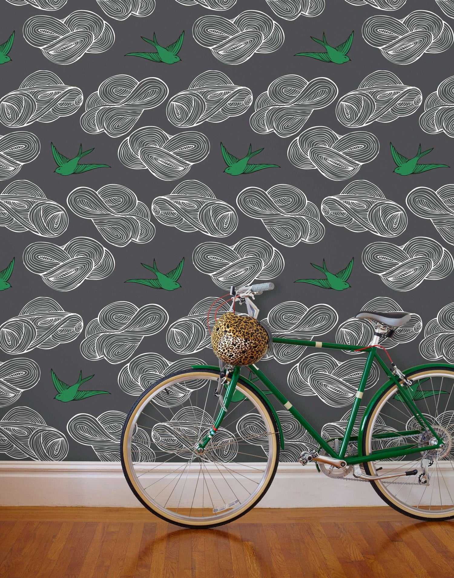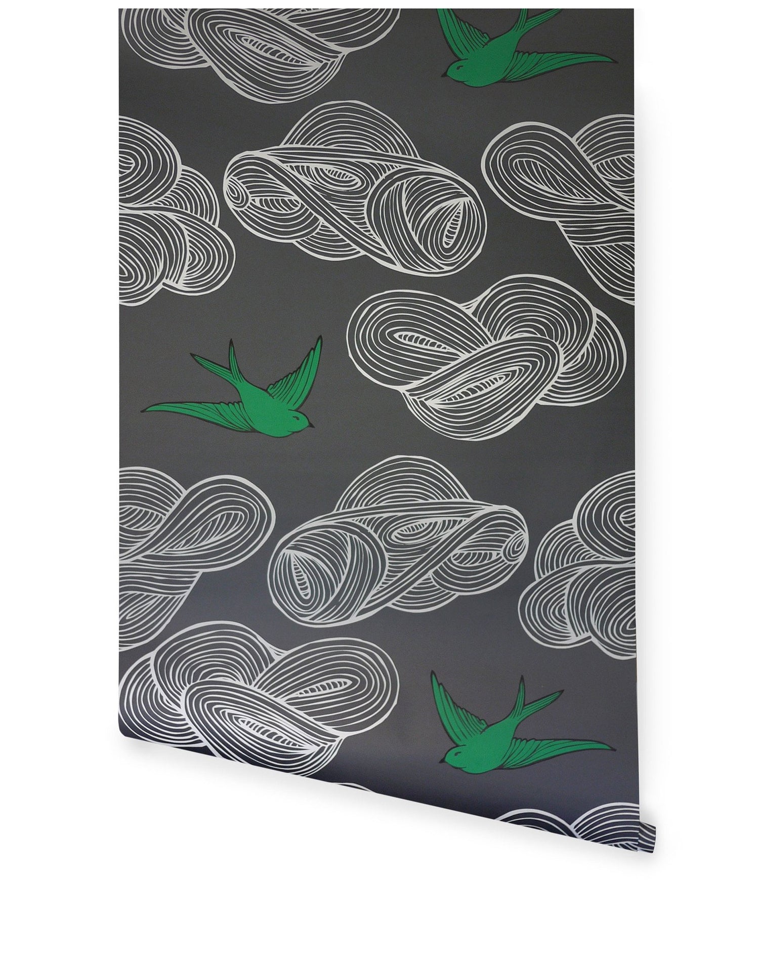 Hand-drawn birds and clouds float in this large scale, modern wallpaper pattern that mixes a classic design with contemporary colors. From blush, gray and blue to metallics and neutrals, Daydream finds its home in a wide variety of interior spaces.