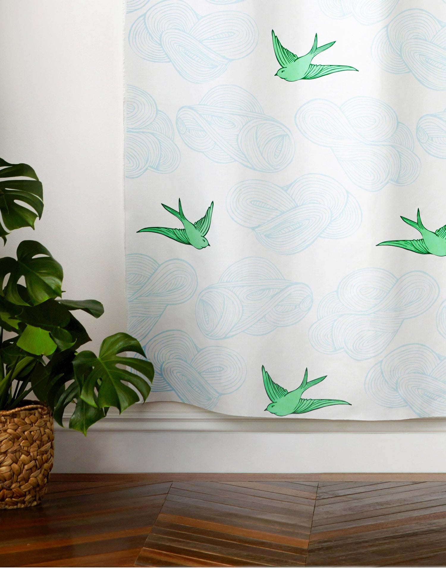 Hand-drawn birds and clouds float on this modern fabric that mixes a classic design with contemporary colors. Offered in four colorways, Daydream fabric finds its home in a wide variety of interior spaces.