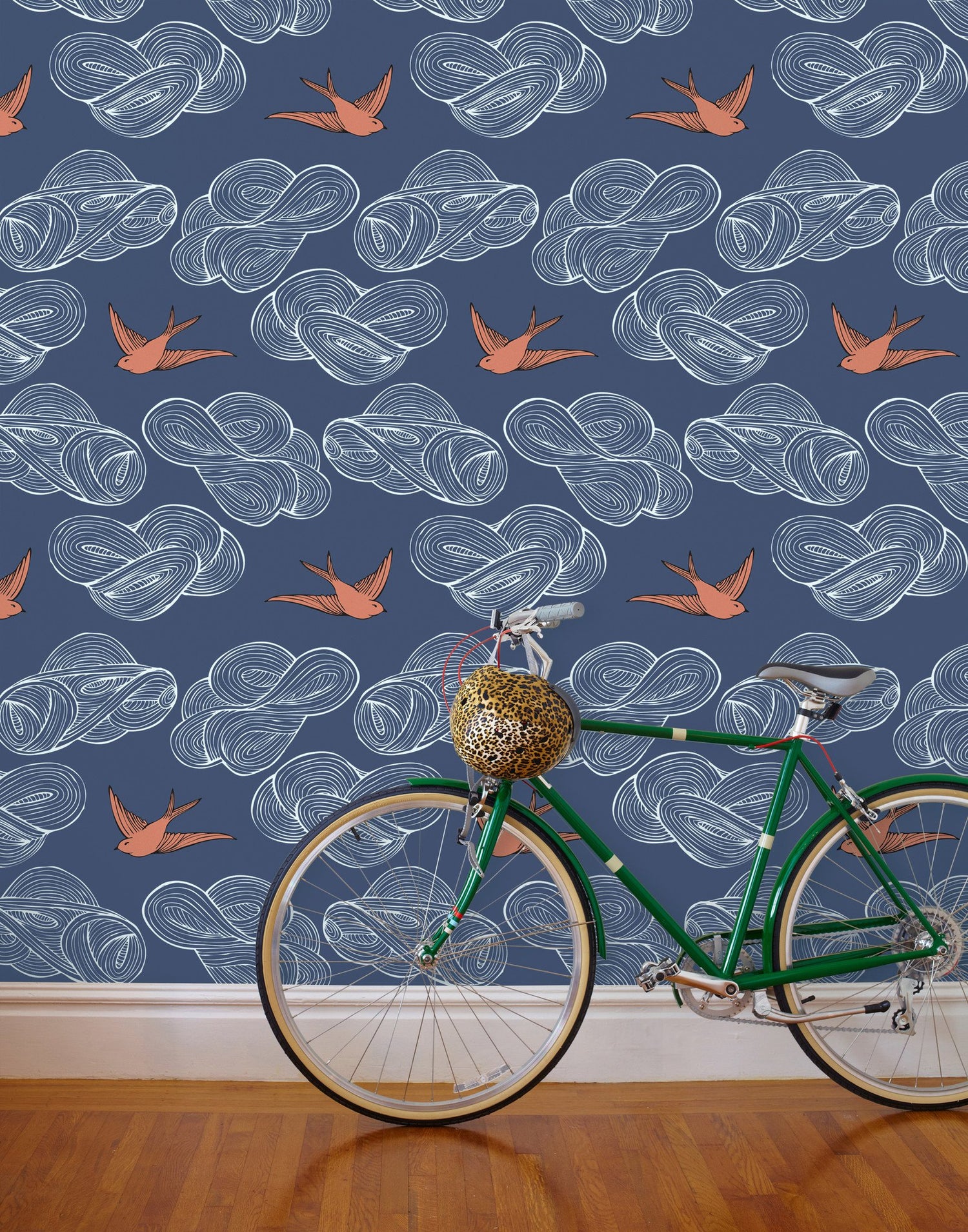 Hand-drawn birds and clouds float in this large scale, modern wallpaper pattern that mixes a classic design with contemporary colors. From blush, gray and blue to metallics and neutrals, Daydream finds its home in a wide variety of interior spaces.