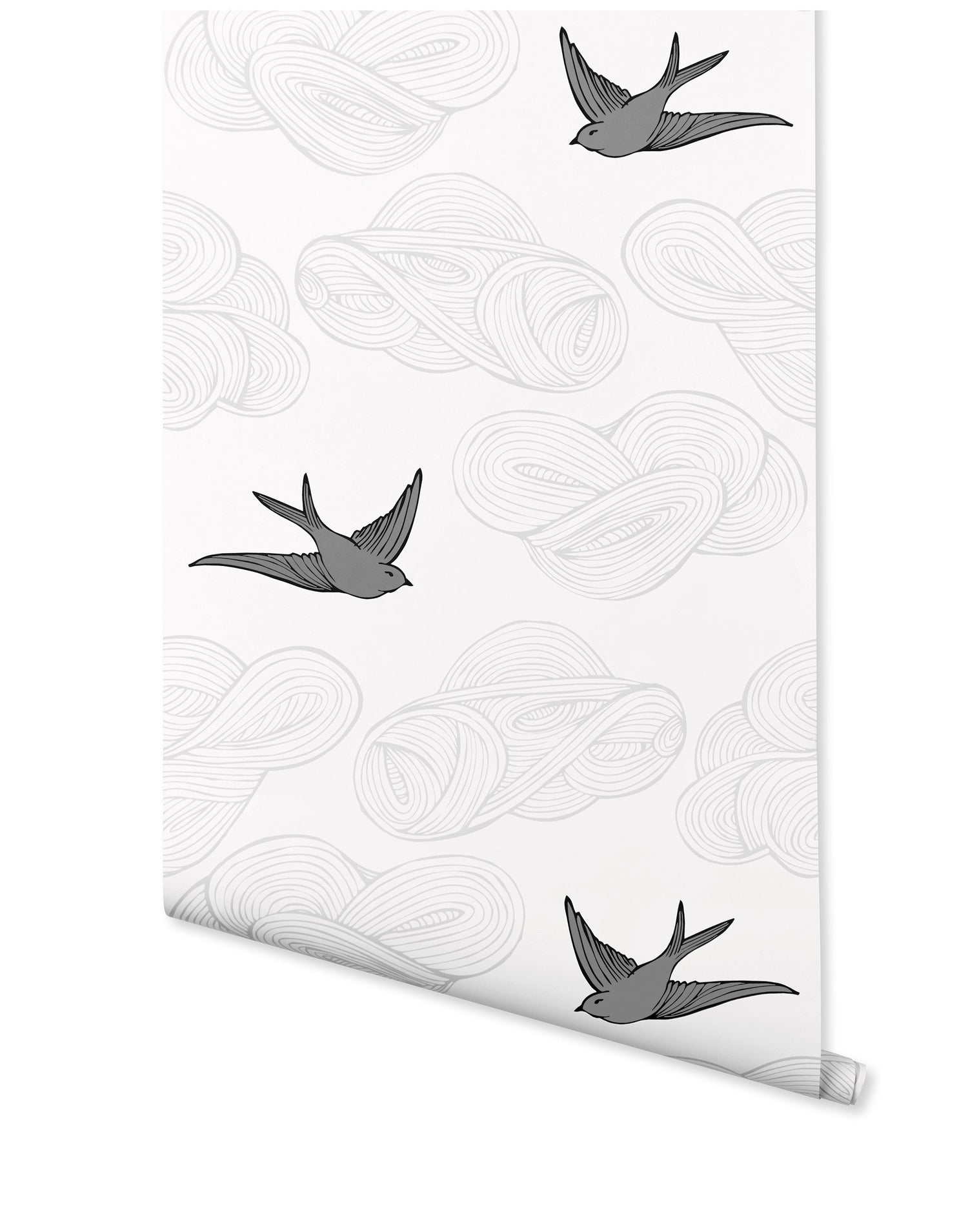Hand-drawn birds and clouds float in this large scale, modern wallpaper pattern that mixes a classic design with contemporary colors. From blush, gray and blue to metallics and neutrals, Daydream finds its home in a wide variety of interior spaces.