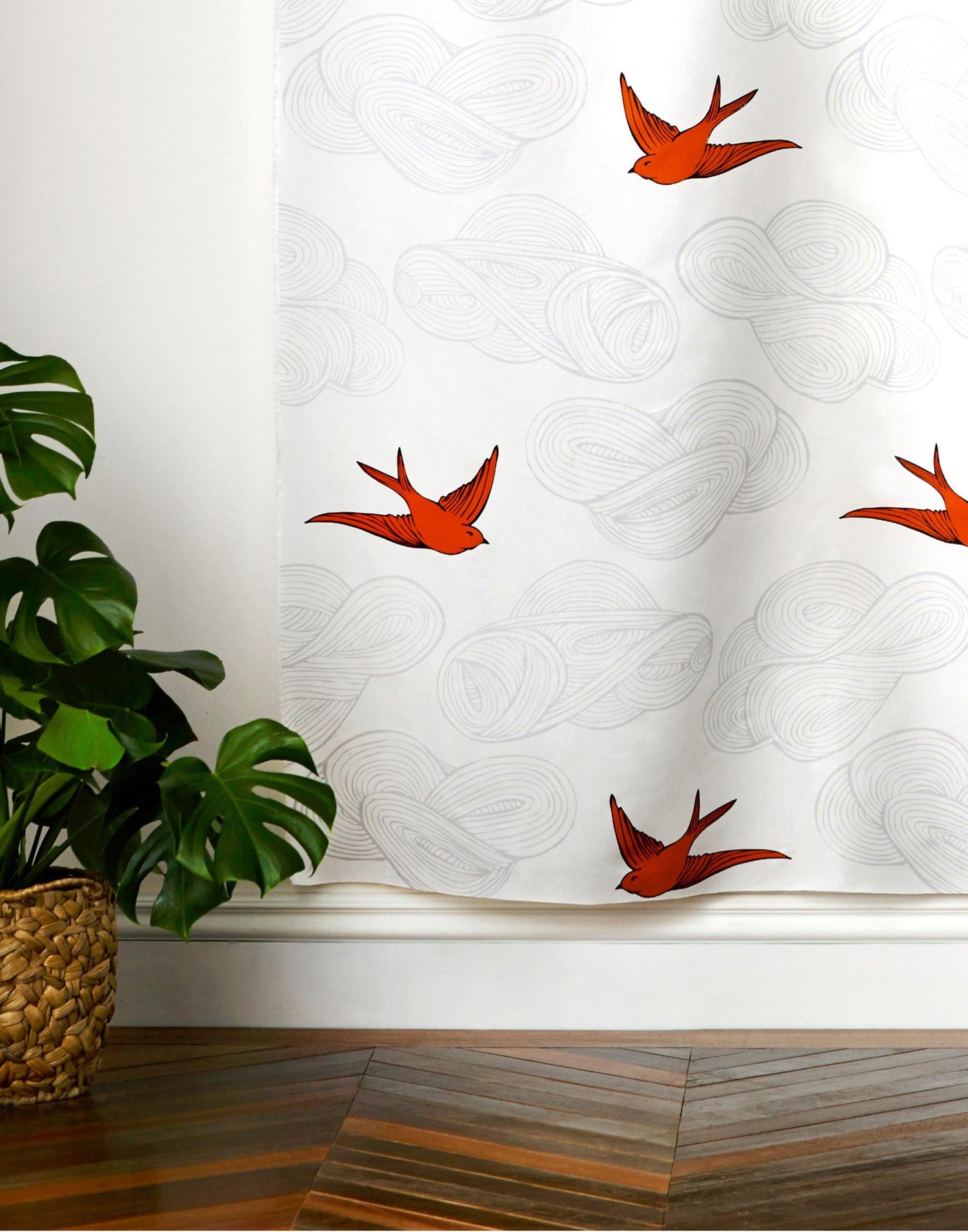 Hand-drawn birds and clouds float on this modern fabric that mixes a classic design with contemporary colors. Offered in four colorways, Daydream fabric finds its home in a wide variety of interior spaces.