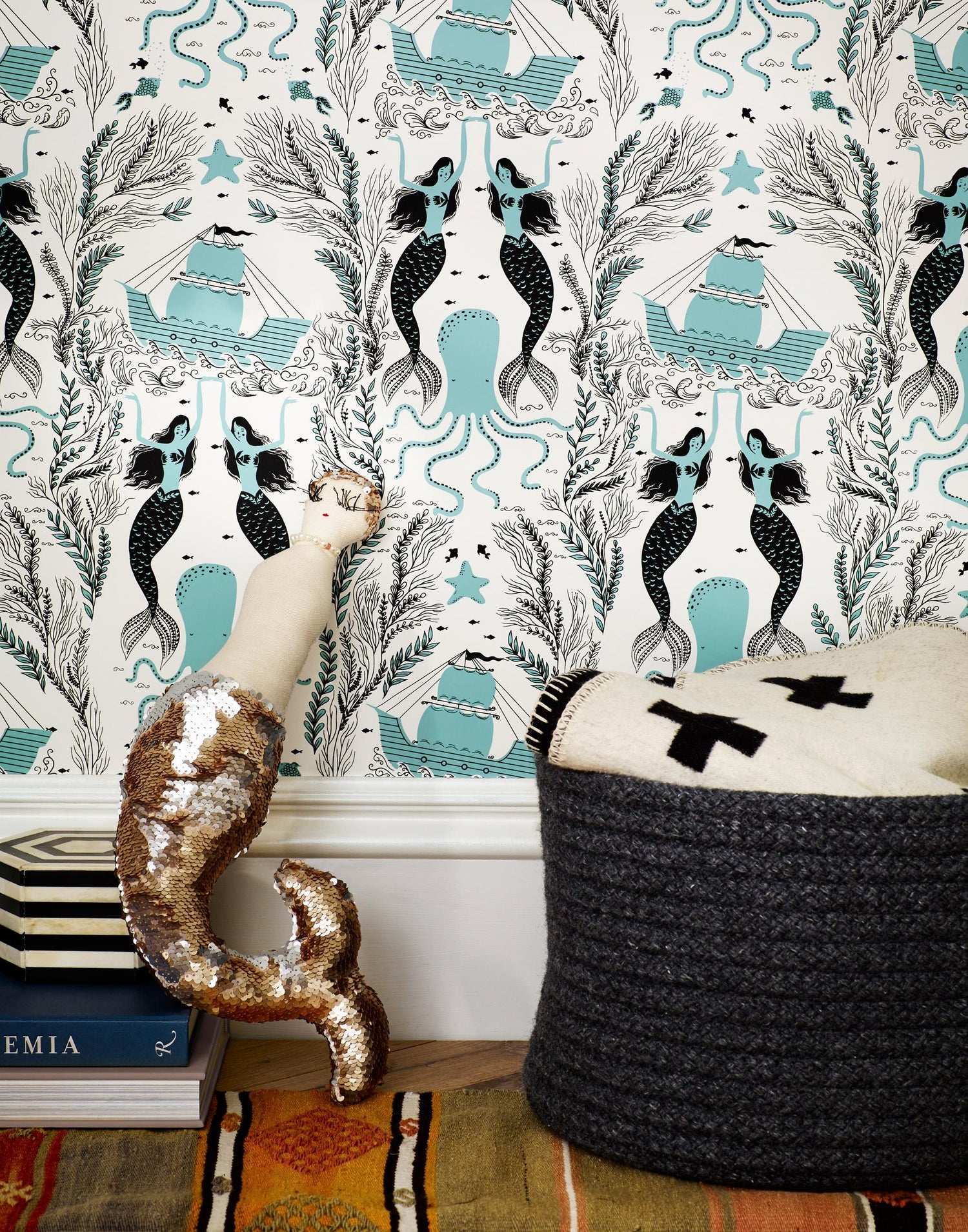 Mermaids, surreal and magical, charm and enchant. Initially drawn as a way for Dinara to play with her daughter, this design is inspired by the stories they created about mermaids and their underwater adventures. Mermaids combines the fresh viewpoint of a child with detailed sophistication in a pattern that’s sure to capture your imagination.