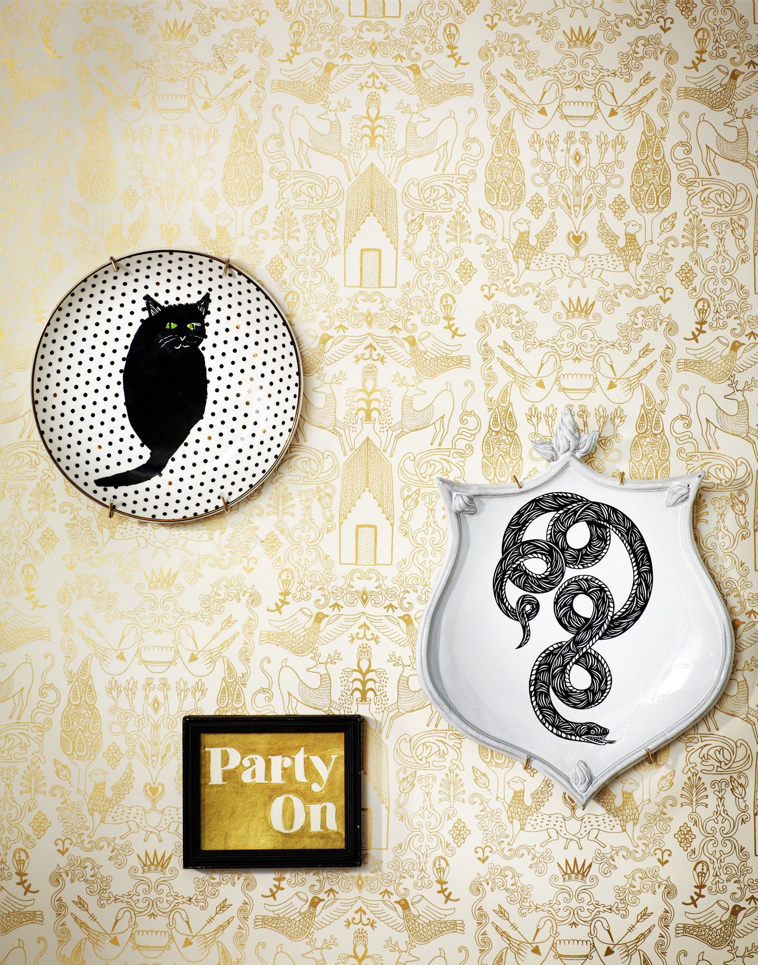 Metallic gold illustration on an off white background