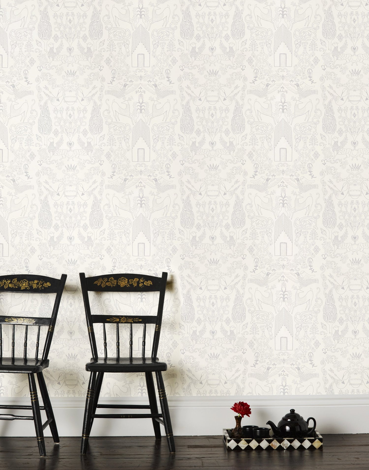 Traditional meets modern in this playful wallpaper pattern. We named this design after a small country home in Northern England with a sprawling manicured garden complete with deer and swans.