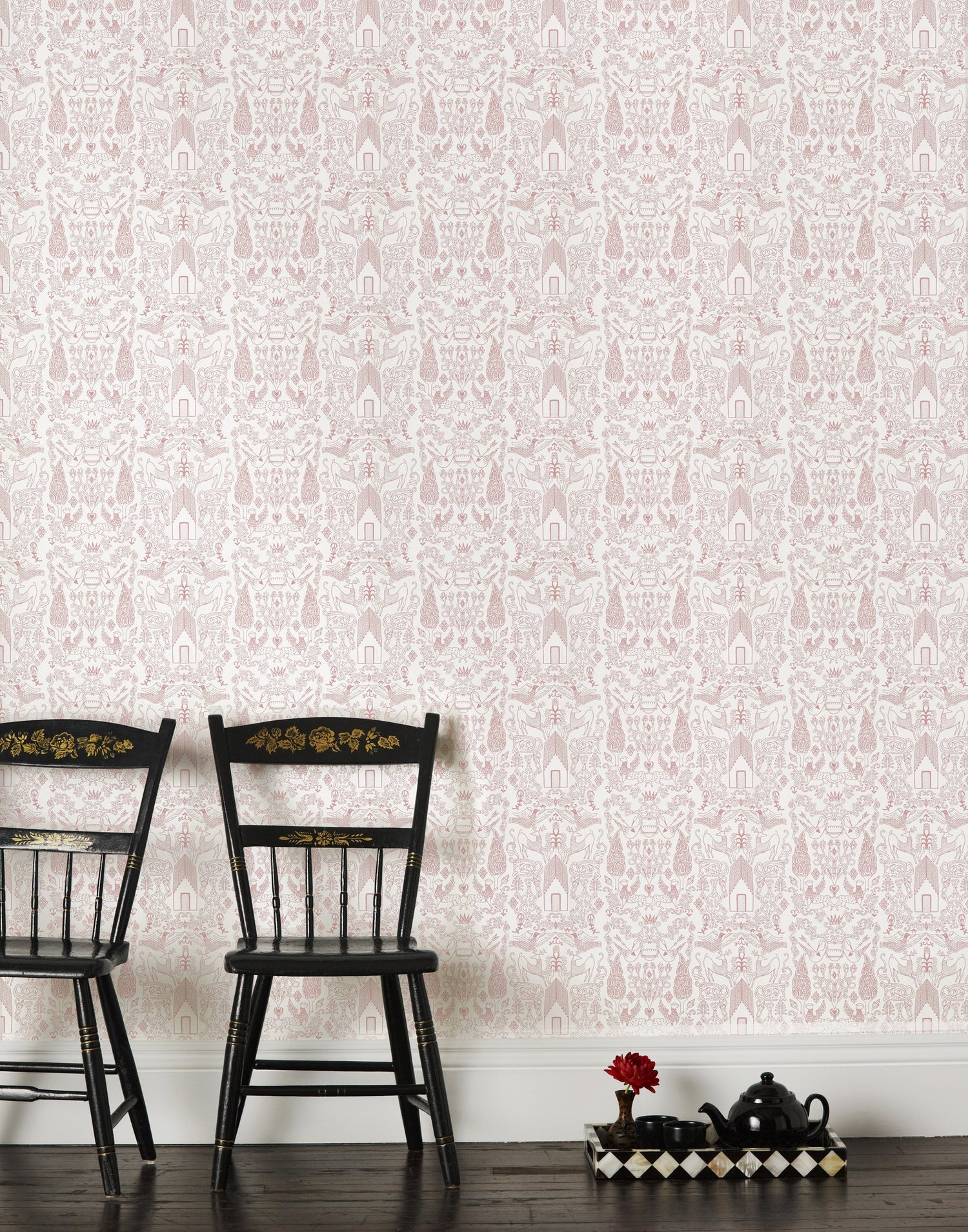 Traditional meets modern in this playful wallpaper pattern. We named this design after a small country home in Northern England with a sprawling manicured garden complete with deer and swans.