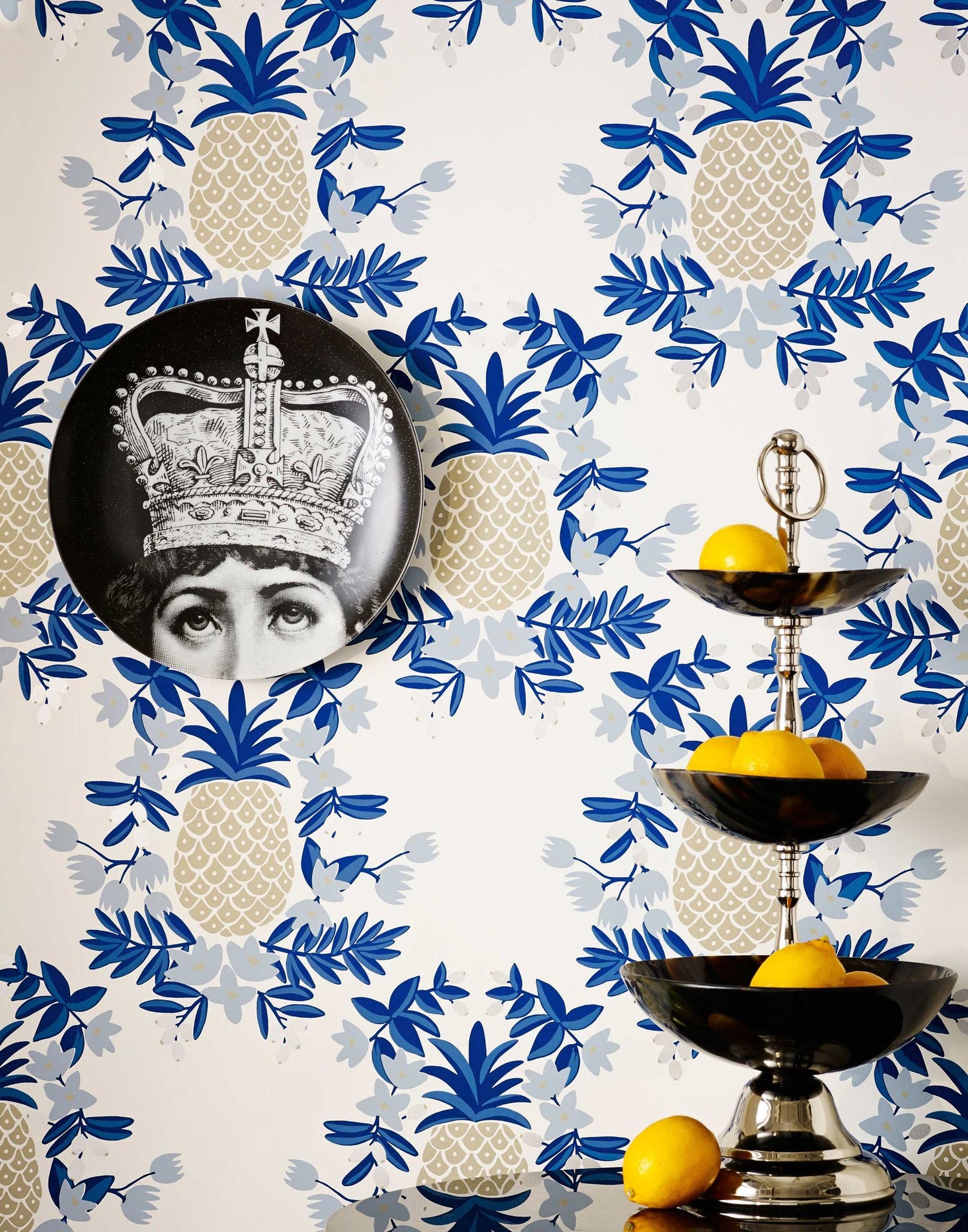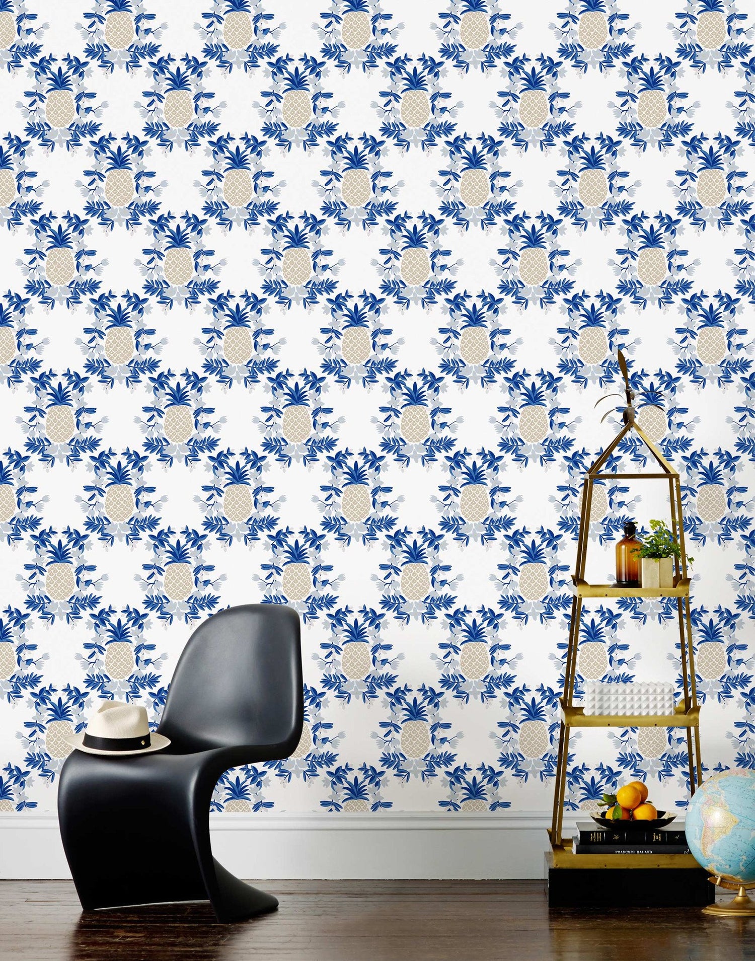 Pineapples symbolize friendly hospitality and a warm welcome to guests. Tradition takes on a modern twist with this formal grid pattern and Rifle Paper Co.'s signature florals. Available in five unique colorways with muted, metallic touches that shift in the light.