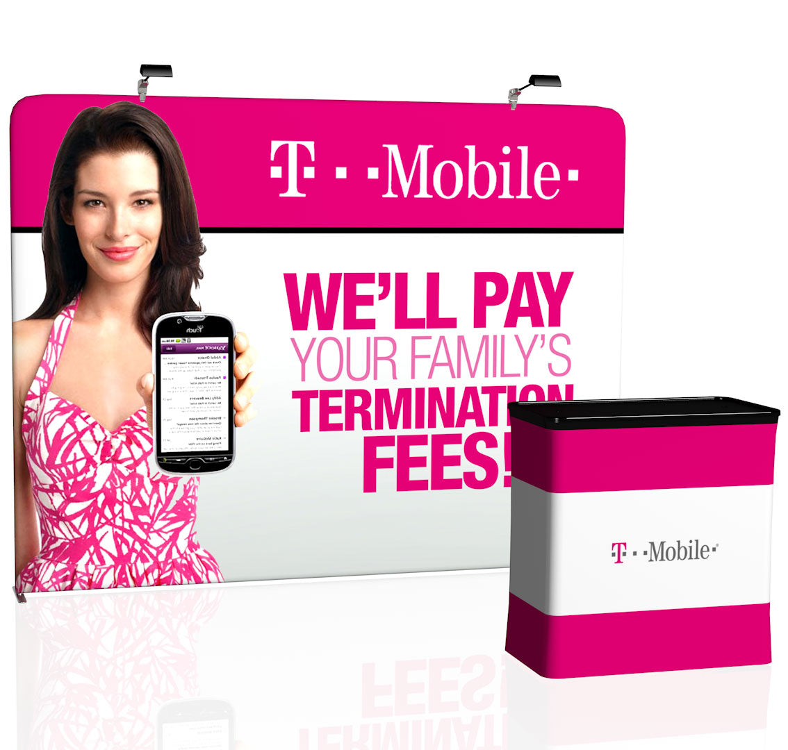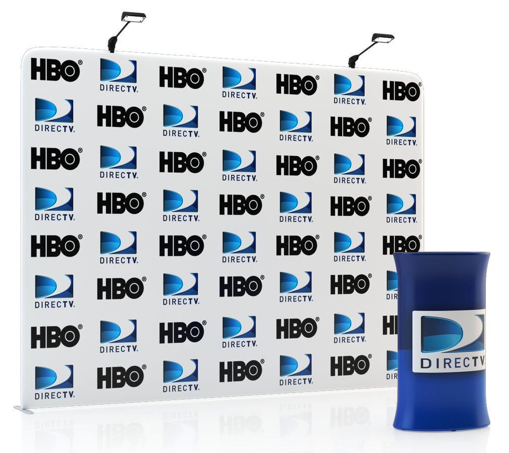 Need your custom trade show display in hand within 3-4 business days? This fast-production item can be produced and shipped out in 2-3 business days. Please note that express shipping will also need to be added to your order upon checkout, and timely artwork upload with prompt proof approval is required in order to avoid delays. The 10' Tru-Fit Straight trade show display offers a seamless flat backdrop for your next event or trade show. The snap-tube aluminum frame provides a lightweight, yet sturdy frame and sets up in just a few short minutes. The Tru-Fit exhibit booth can be upgraded to a hard shell case* that converts into a podium. The entire display (including the hard case) is light enough to check as luggage on most major airlines! The Tru-Fit isn't done yet! Make this a double-sided print for twice the marketing genius and use it for different events and demographics or to showcase multiple products and brands. Also a killer for Step & Repeat displays at events and conventions! This package comes stock with the full hardware set with two stabilizing feet, full custom graphic, and a nylon duffle bag to carry your goods to and from events. Want to make an even bigger splash at the show? Upgrade to our premium hard-shell transport case that will convert into a podium when you add a matching podium graphic and two LED lights to make your brand shine! Featured Package Includes: (1) High Resolution Zippered Tension Fabric Graphic Print (1) 10' Aluminum Snap-Tube Frame(1) Nylon Duffel Bag with Wheels Optional Upgrades:(2) LED Lights (1) Durable Hard Case* with Wheels(1) Podium Graphic Conversion Kit *Case is designed for transport only. We highly recommend saving and reusing the cardboard shipping carton for future shipping purposes
