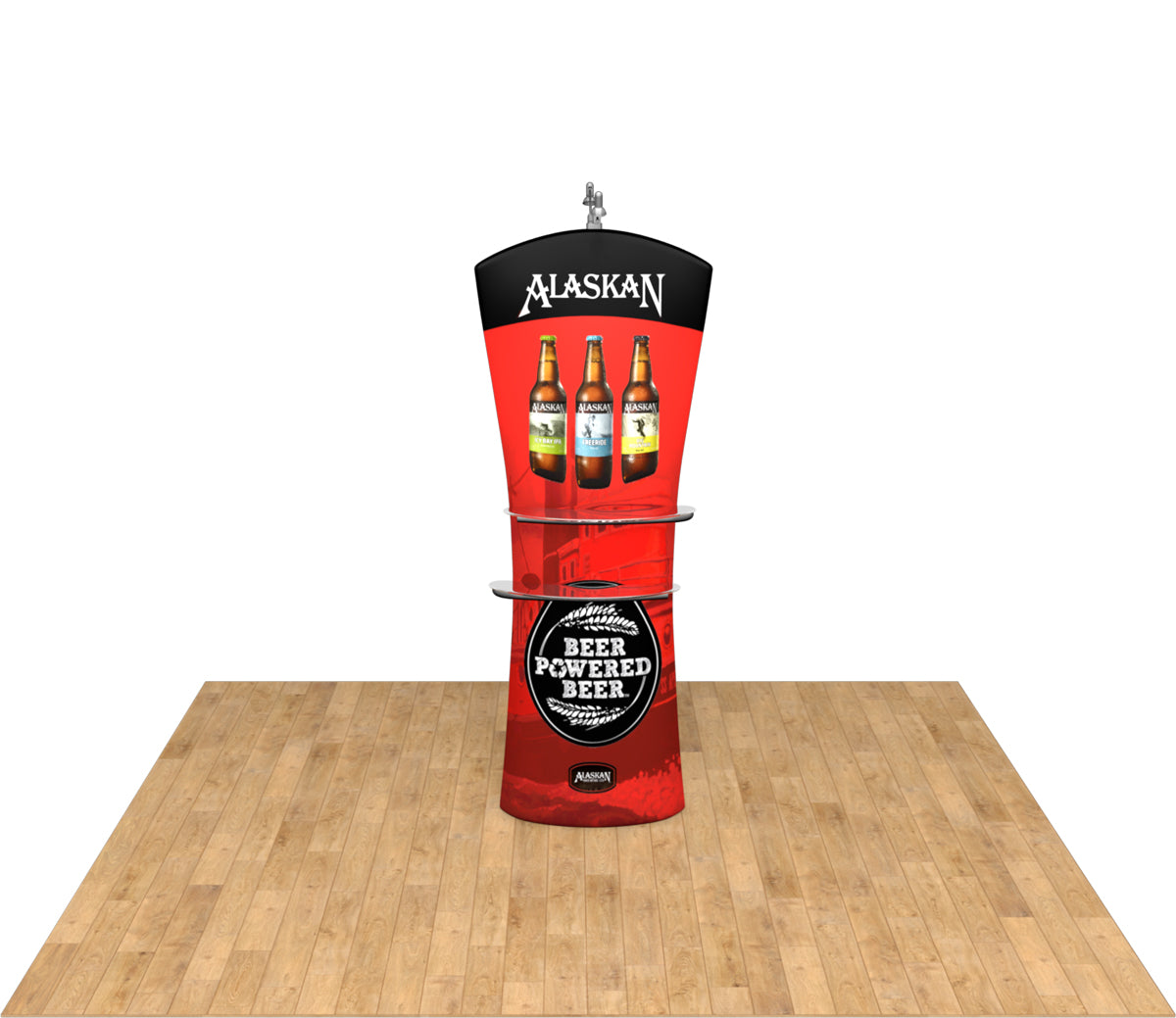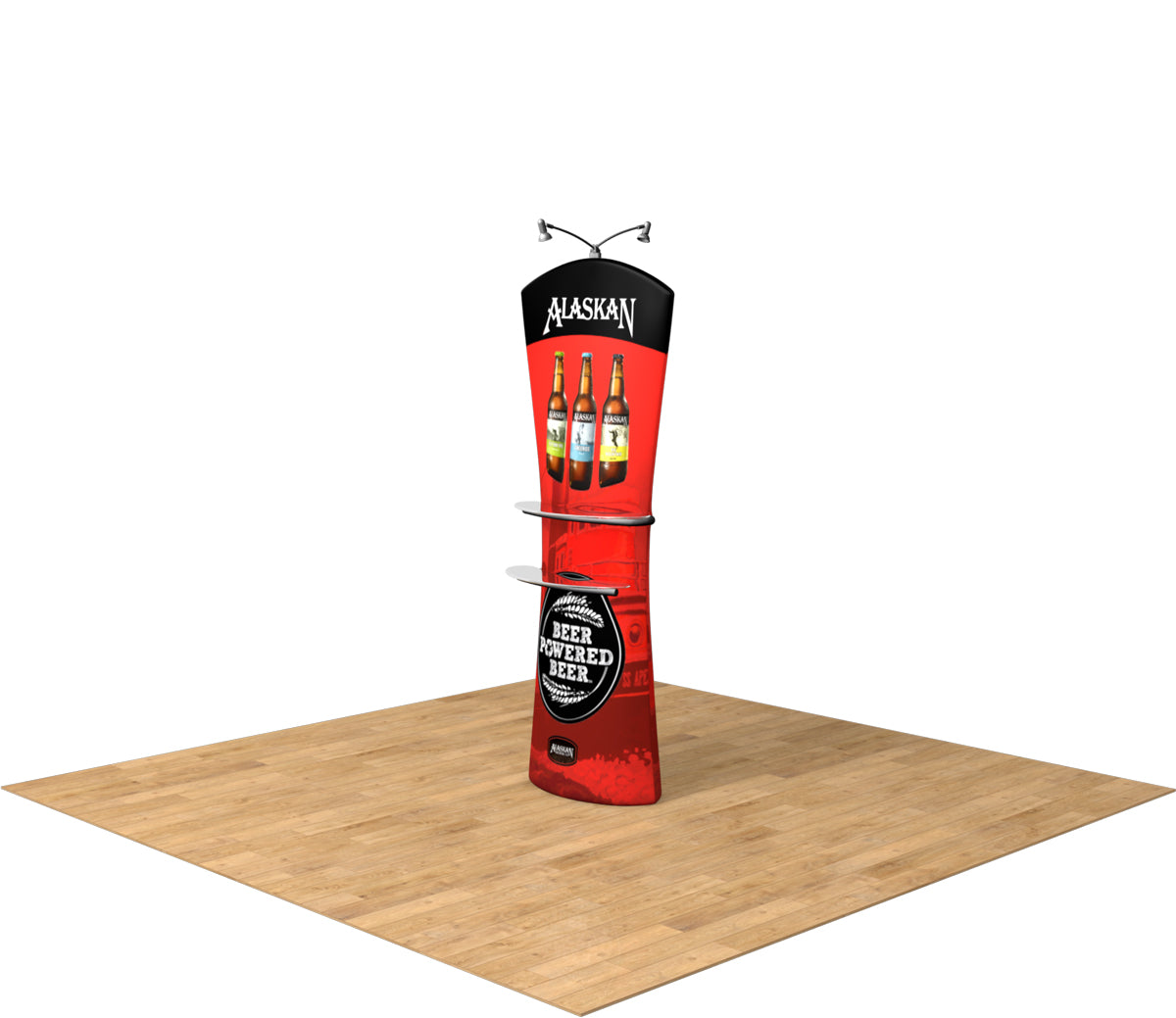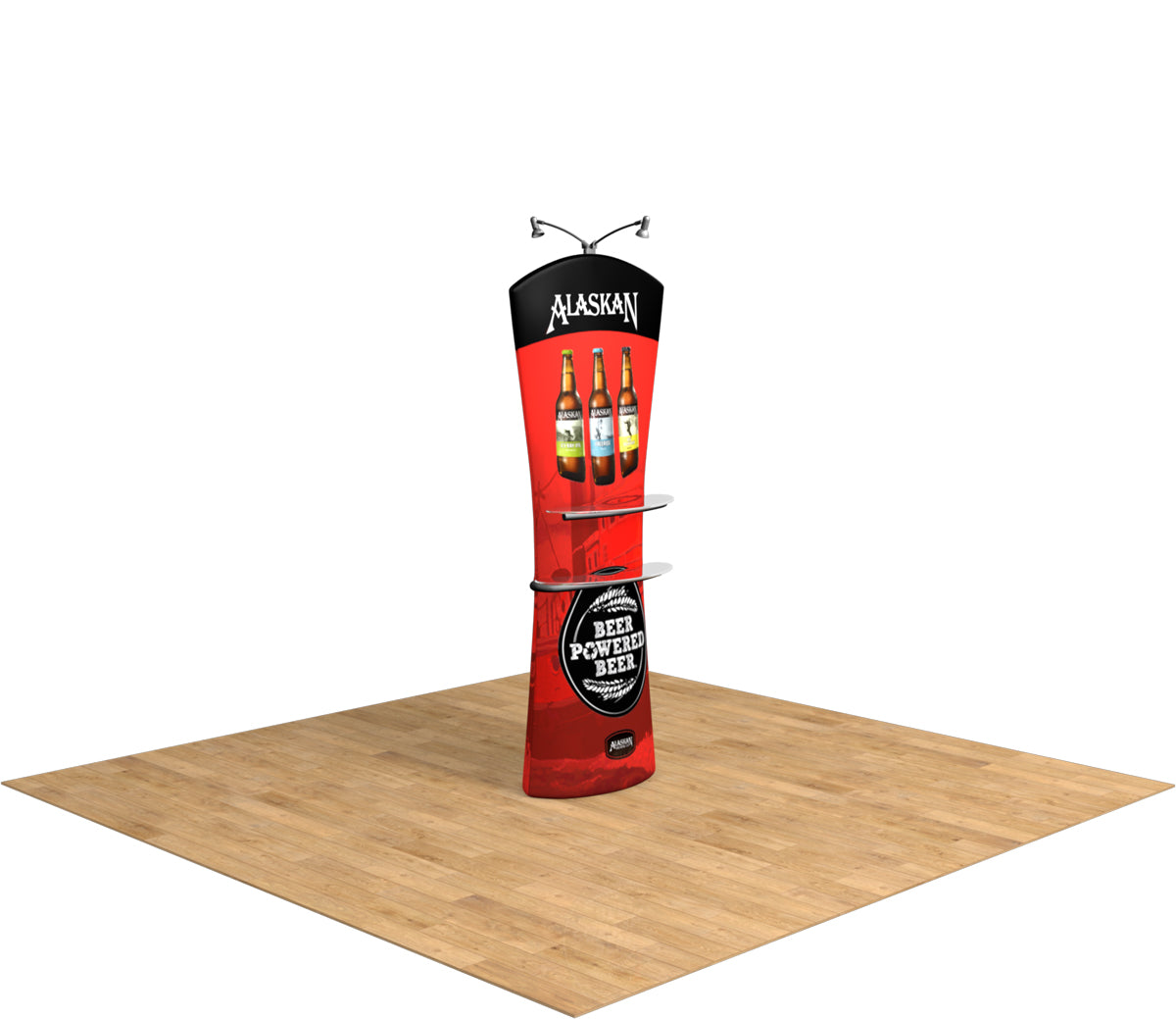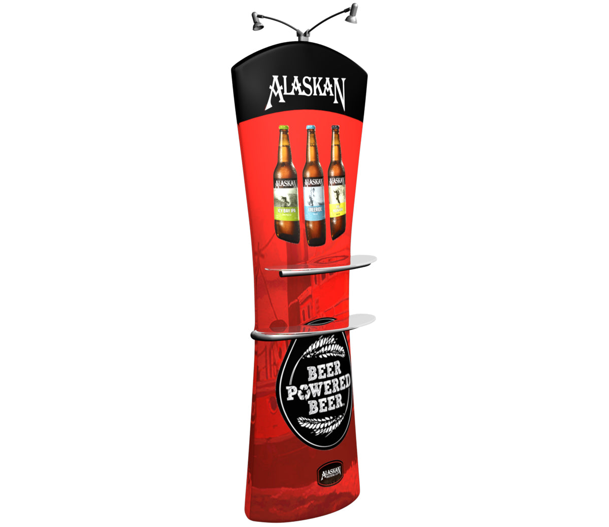 The Curved Tru-Fit Viper is a fantastic alternative to the traditional banner stand. The unique design of this display product includes a double-sided tension fabric graphic that allows for optional shelves and lights to be added to one or both sides. Use this tension fabric display stand to compliment any of our full size Quick-Zip displays, and even add shelves or lights to bring it to life. Available in 3 shapes, and comes with case and carry strap. Featured Package Includes: (1) Tru-Fit Collapsible Aluminum Frame with Curved Top(1) Wooden Base(1) High Resolution Double-Sided Zippered Tension Fabric Graphic(1) Fitted Shell Case with Strap Optional Upgrades: (2) Viper Shelves - support up to 5 lbs each(2) 50W LED Spotlights