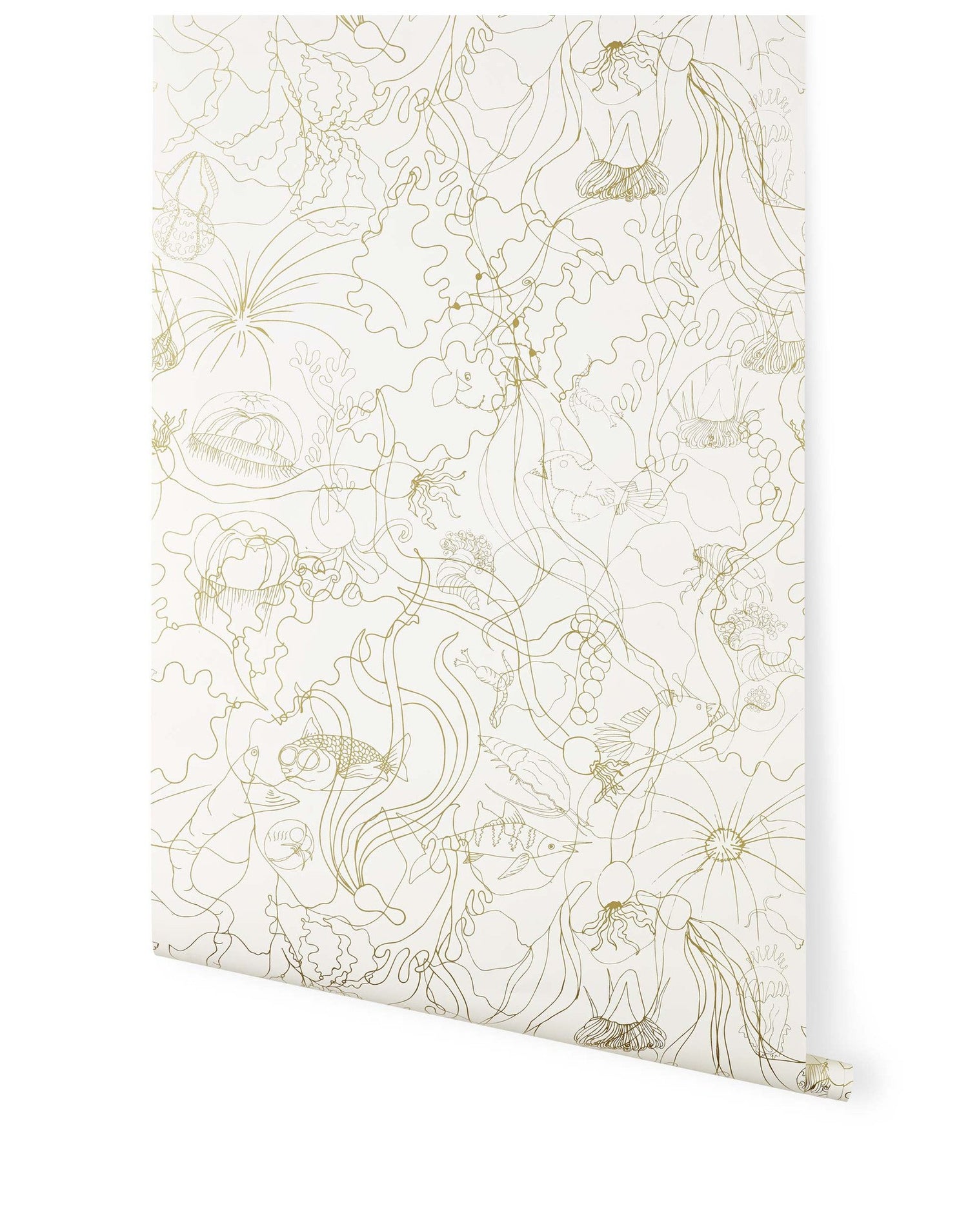 Metallic gold illustration on an off white background