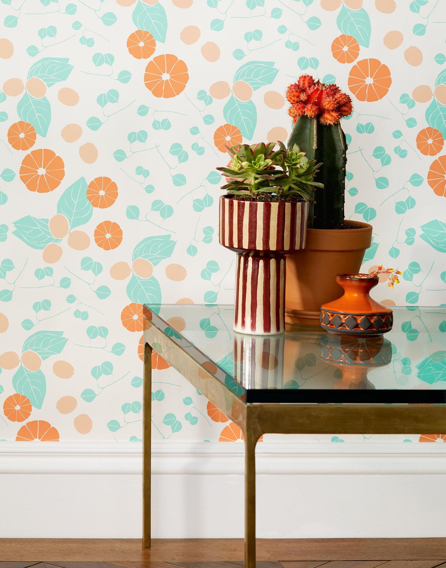 "Don't forget your Vitamin C," Justina's mother would say to her as she handed her an orange on her way to school as a child. Vitamin C wallpaper is inspired by citrus fruits and sweet floral motifs of the 50's and 60's.